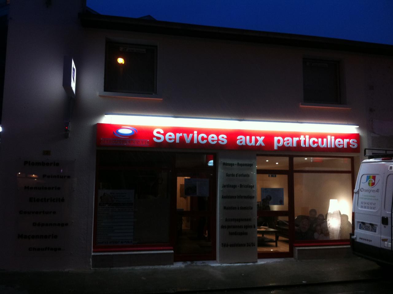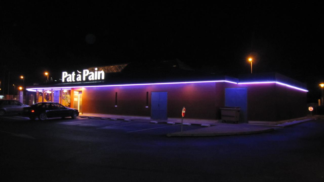 Bandeau en dibond rouge avec lettres en pvc 20 mm et rampe d' éclairage
