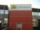 Bandeau en dibond rouge avec lettres en pvc 20 mm et rampe d' éclairage